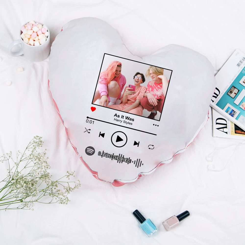 Dedica una canzone ad una persona importante: personalizza il tuo cuscino a forma di cuore spotify.