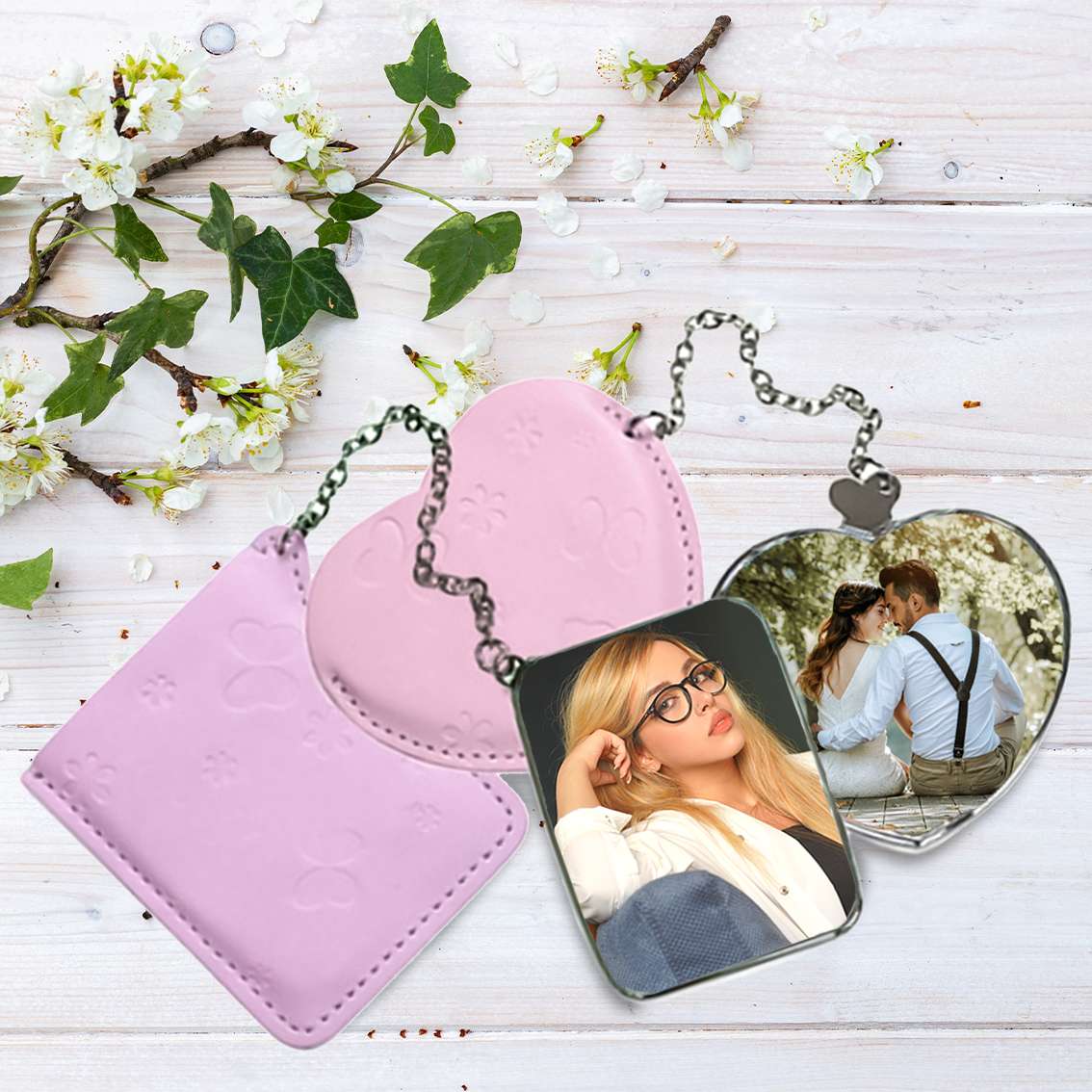 Pratico e compatto, questo specchietto personalizzato è perfetto per quando sei fuori. Inseriscilo nella borsetta per l'uso in viaggio, perfetto per truccarti ovunque tu sia!